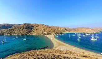Andros Island is the second largest island in the Cyclades archipelago. Gavrio is the first place you see when you arrive to Andros. It is the main port of the island. This typical small Cycladic port offers restaurants, shops and hotels. He is calm and pleasant. Batsi is the most popular tourist destination on Andros. It is located 7 km south of Gavria. On Batsi you will find many restaurants, shops and hotels. A beautiful promenade leads you to the port. Hora is the capital of Andros. Many museums are located here, such as the Maritime Museum and the Archaeological Museum. Andros offers beautiful beaches such as Grias Pidima, Achla and Vori.
